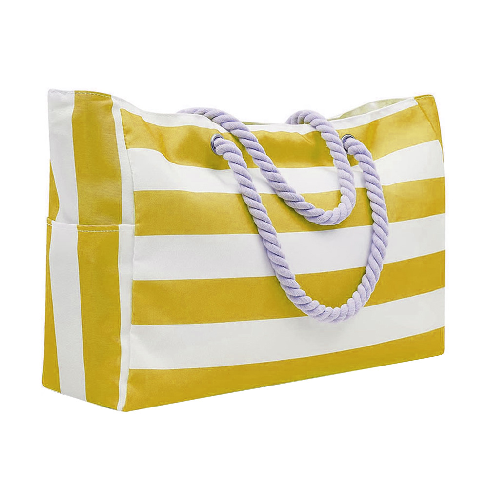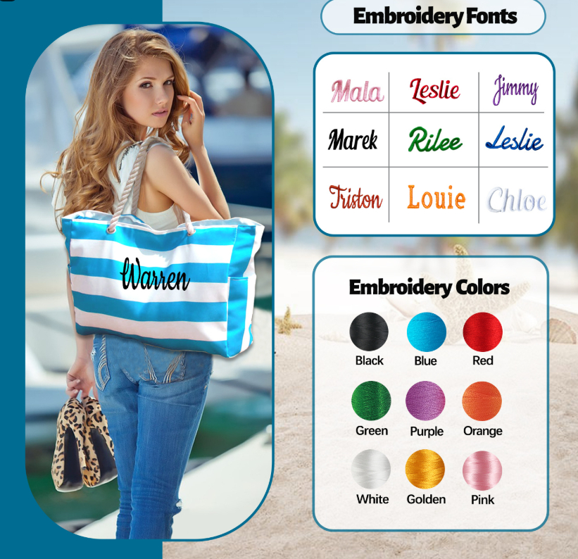 Embroidered Striped Beach Bag With Large Capacity
