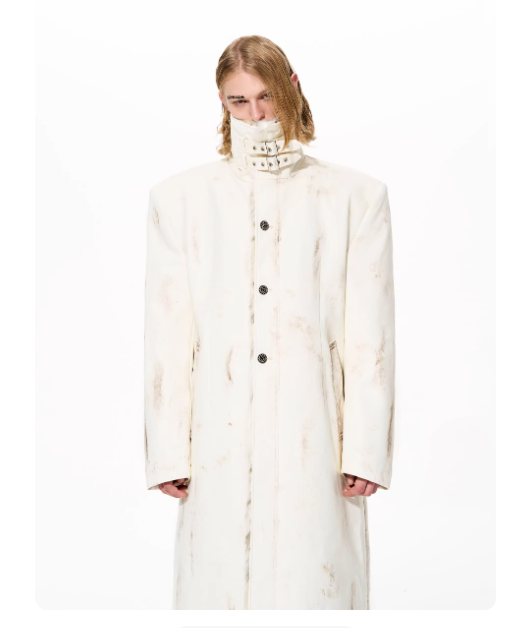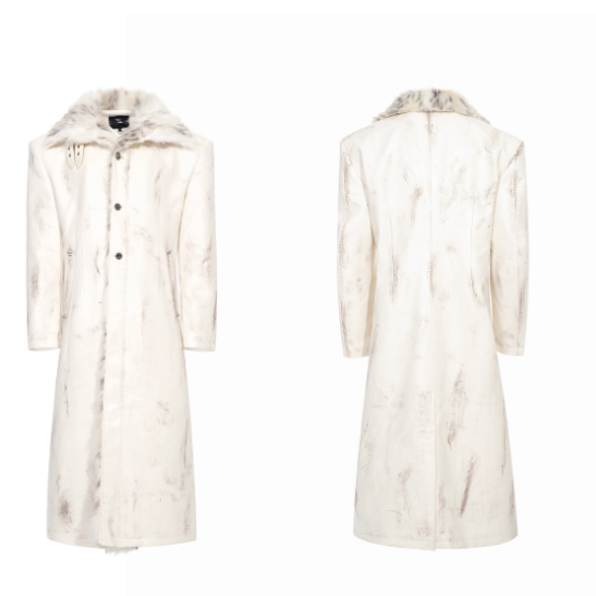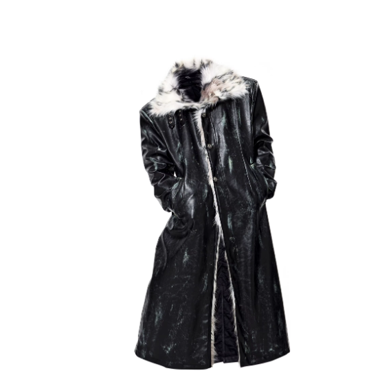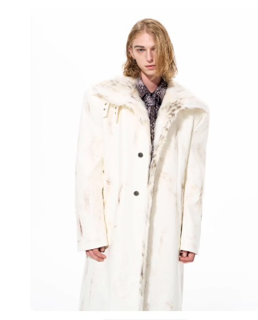 Hand-painted Distressed Long Leather Coat For Men